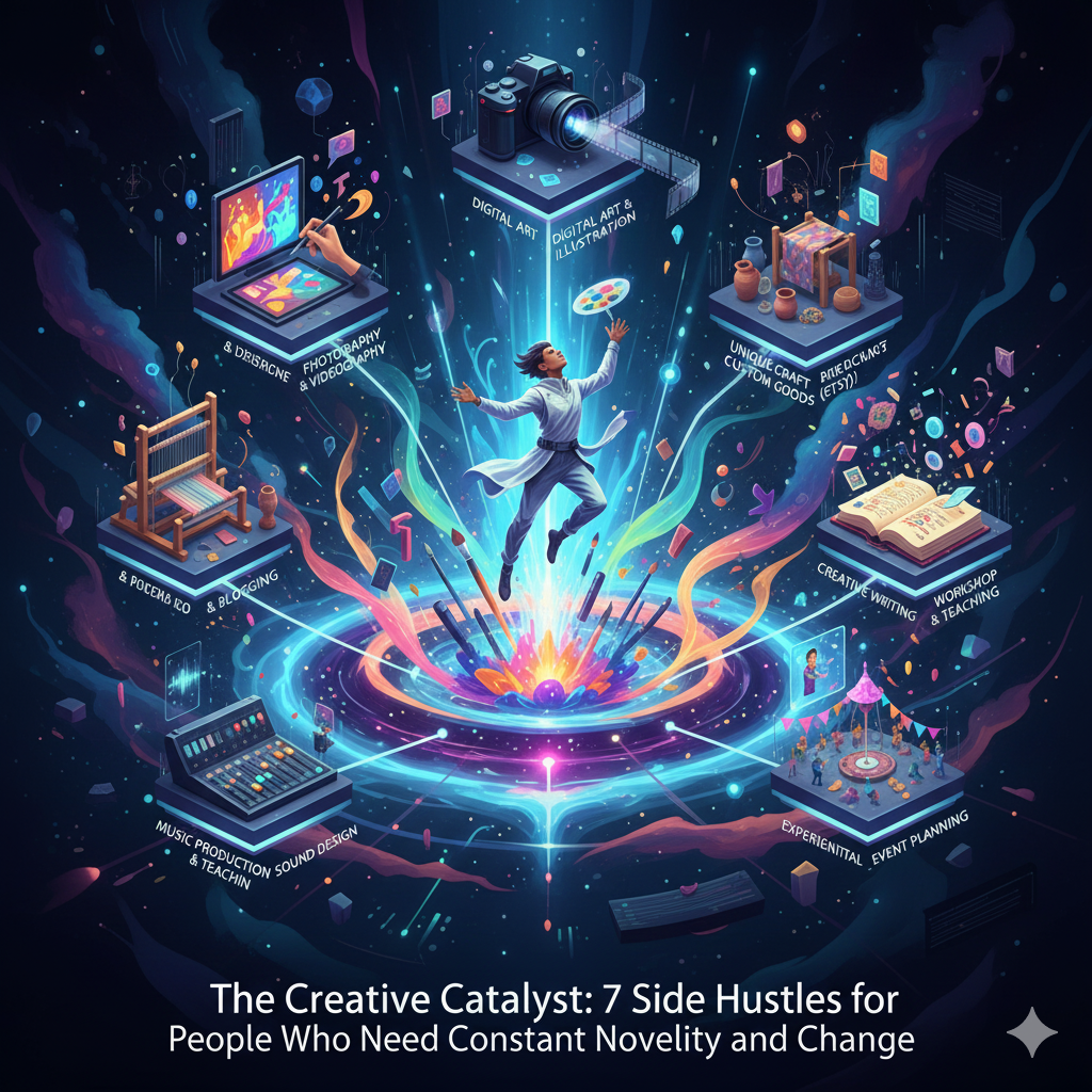 The Creative Catalyst is rewarded not for stamina, but for velocity and originality. Your financial success is tied to your ability to recognize when the novelty is gone and move immediately to the next challenge. By choosing side hustles focused on ideation, prototyping, and short-burst innovation within the high-demand sectors of technology and finance, you turn your dynamic personality into a continuously high-earning asset.