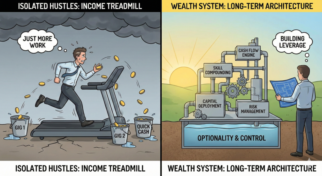 This article reframes side hustles from short-term tactics into a long-term financial architecture.