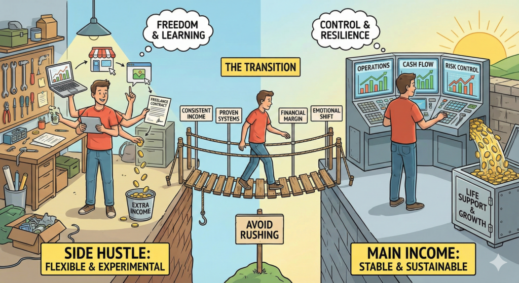 A side hustle and a main income operate under very different constraints.