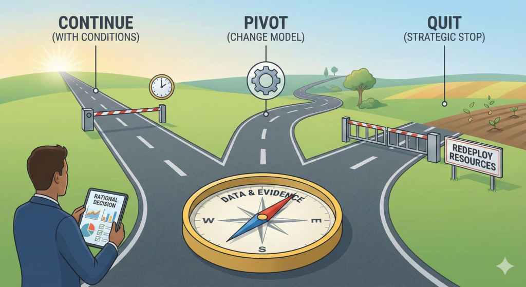Continuing, pivoting, and quitting are all valid moves — when chosen deliberately.